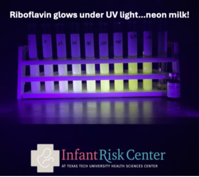 Under UV light, riboflavin glows bright yellow-green. This may help explain why some moms describe milk as neon, glowing, and very bright. While we did not test full bottles, these results show that milk color can be very sensitive to small changes in composition.